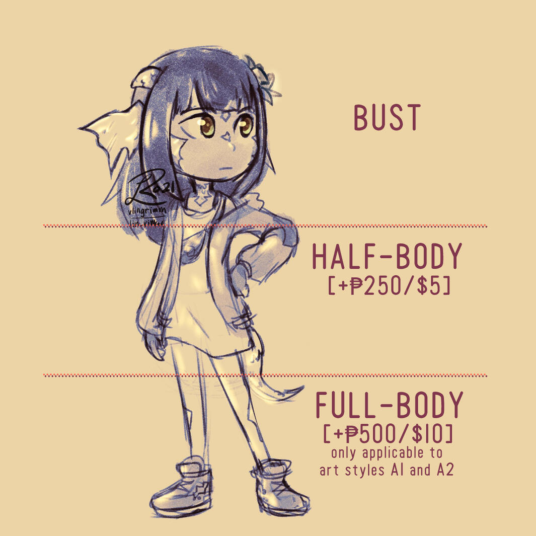 Please fill out the Google form first before ordering a commission. Afterwards, I will contact you through your preferred contact.If I accept, I will tell you the total price and you can then send payment on Ko-fi or GCash (I will DM you my GCash) after I make the final rough sketch. We'll keep in touch and I'll send you updates through your preferred contact!